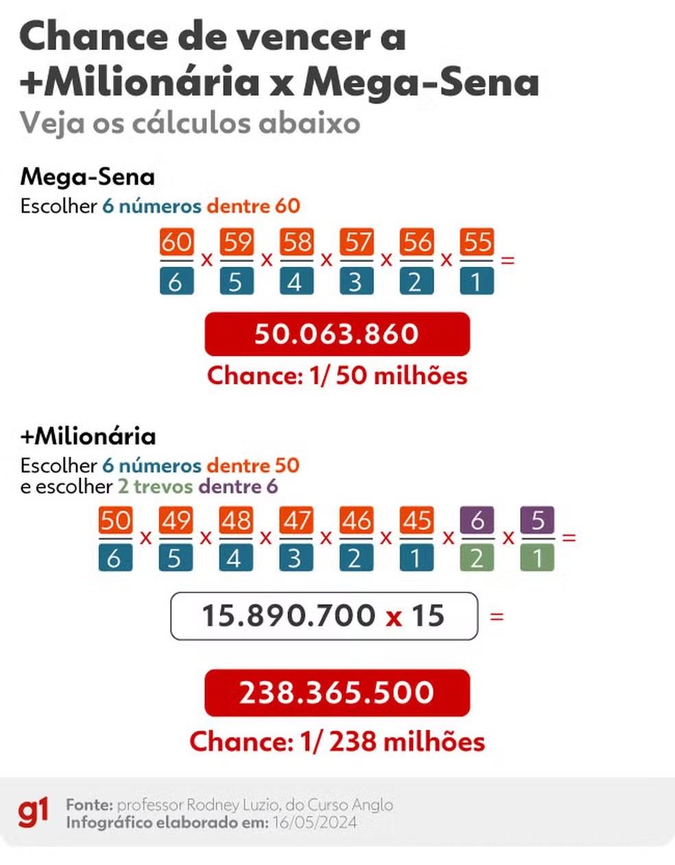 - Isso significa que é quase cinco vezes mais difícil ganhar na +Milionária do que na Mega-Sena.