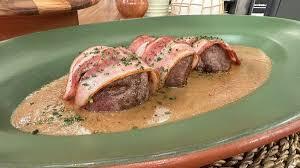 Numa frigideira, adicione o café expresso, a mostarda, o creme de leite, a manteiga e a noz-moscada. Deixe os ingredientes cozinhem, até engrossar, em fogo baixo. Em seguida, grelhe o filé mignon e as batatas. Lembre-se de que as batatas devem estar cozidas, com casca e cortadas em cubos. Salteie a carne e os legumes, na frigideira, com alecrim e suco de limão.