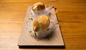 Insert de chocolate: Em uma panela pequena, ferva o creme de leite com a glucose e a pimenta. Passe essa mistura por uma peneira e verta-a sobre o chocolate e a manteiga, misturando bem. Coloque a ganache, ainda quente, em moldes de semiesfera e leve para congelar. Por fim, junte cada unidade para fazer uma esfera completa e reserve no freezer.
