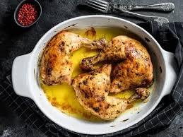 Vamos fazer um frango diferente? Pegue um refratário e coloque oito sobrecoxas temperadas com sal, pimenta-do-reino e algumas gotas de limão.