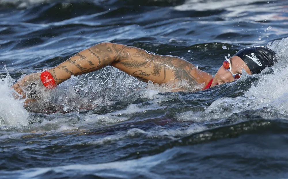 Foi por muito, muito pouco mesmo. Ana Marcela Cunha fez uma prova de recuperação espetacular nesta sexta-feira e quase conquistou a vaga antecipada para as Olimpíadas de Paris do ano que vem. As três primeiras colocadas dos 10 km da maratona aquática do Mundial de Fukuoka (Japão) carimbariam o passaporte para as Olimpíadas de 2024. Ana chegou empatada com duas outras atletas na briga pelo terceiro lugar e a decisão foi para o photo chart (avaliação da chegada por vídeo). Na decisão dos juízes, Ana ficou em quinto com 2 horas, 02 minutos, 42 segundos e 5 centésimos. A americana Katie Grimes ficou com o bronze com 2 horas, 02 minutos, 42 segundos e 3 centésimos e a holandesa Sharon van Rouwendaal foi quarta com 2 horas, 02 minutos, 42 segundos e 4 centésimos