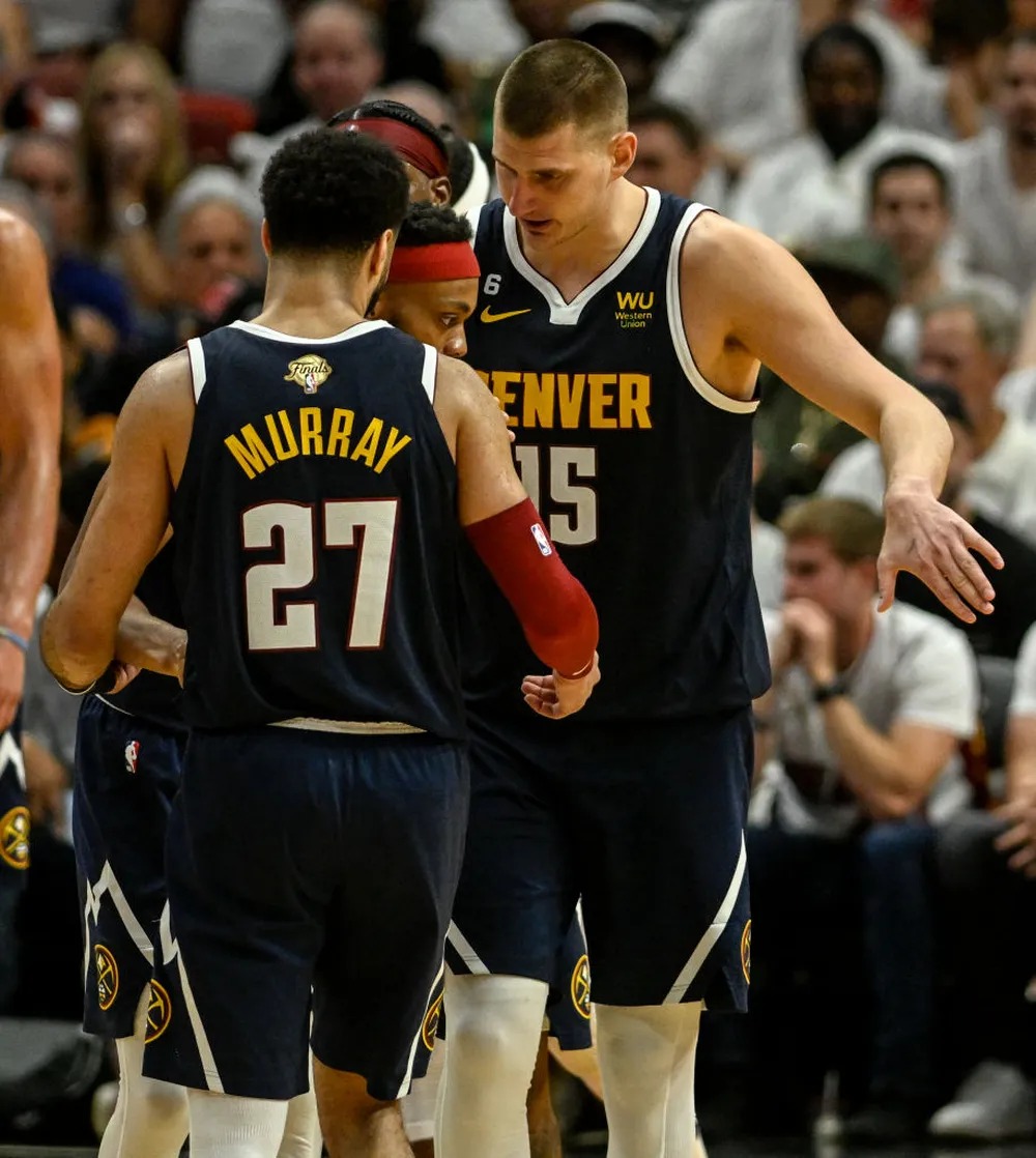 Após uma campanha gloriosa, o Denver Nuggets bateu o Miami Heat nas finais por 4 a 1 e levou o tão sonhado título da NBA. Junto com a conquista inédita, vieram também recordes e marcas históricas tanto no jogo individual quanto no coletivo. Nas cinco partidas que decidiram o campeão da temporada 2022/23, Nikola Jokic e Jamal Murray marcaram seus nomes na maior liga de basquete do mundo. Veja abaixo os números das finais.