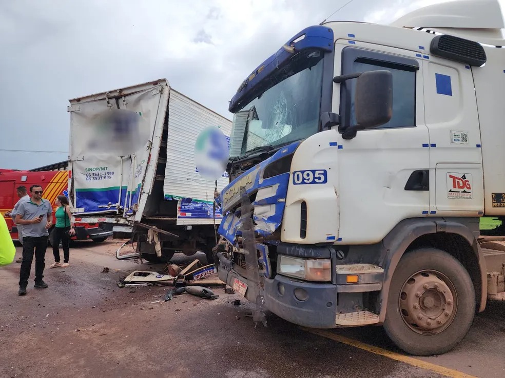Acidente com três caminhões deixa uma pessoa ferida em MT