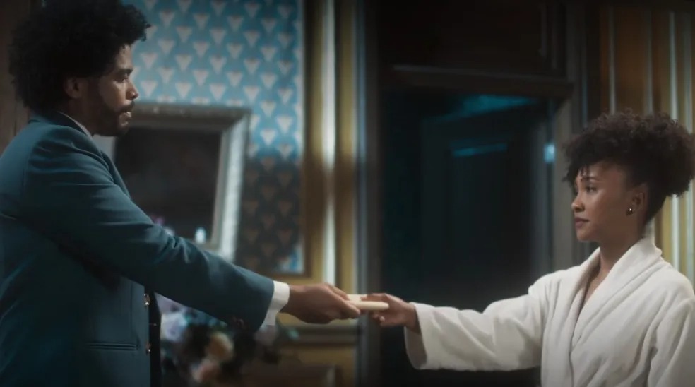 Orlando, então, se surpreenderá quando encontrar a prima no luxo, com direito a champanhe, em uma grande suíte do Grande Hotel.