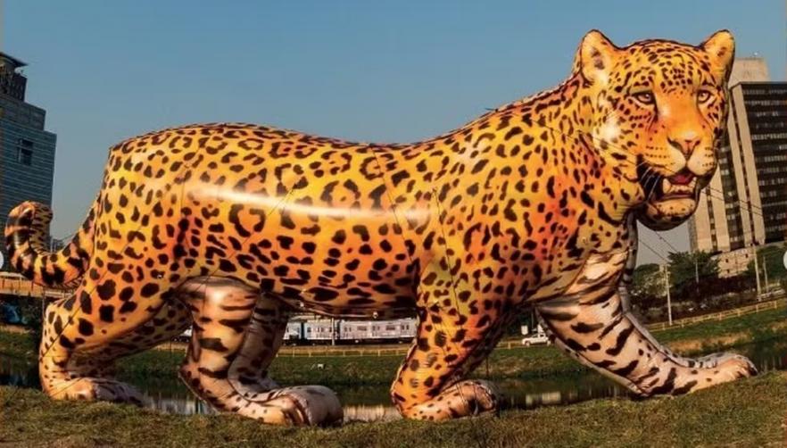 Evento gratuito com 'onça gigante', teatro e música é realizado em parques de Cuiabá