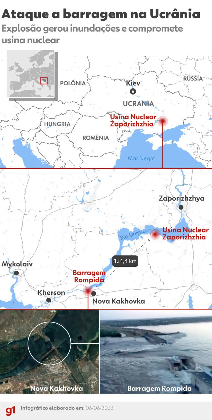 Informações de Explosão rompe barragem de usina ucraniana, inunda cidade e ameaça maior central nuclear da Europa