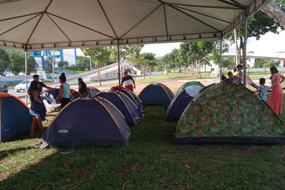 Indígenas montam acampamento em praça de Cuiabá