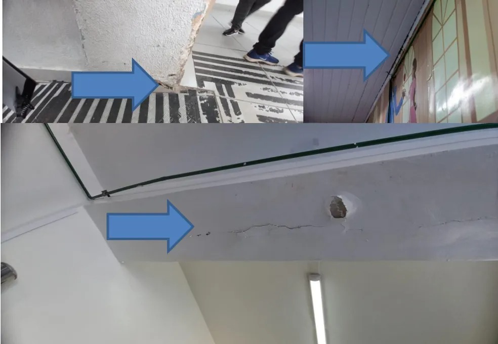 No relatório da Comissão, as irregularidades na infraestrutura variam entre dreno de ar-condicionado inacabado, instalação elétrica exposta, infiltração no telhado e pintura sendo feita por cima de mofo.