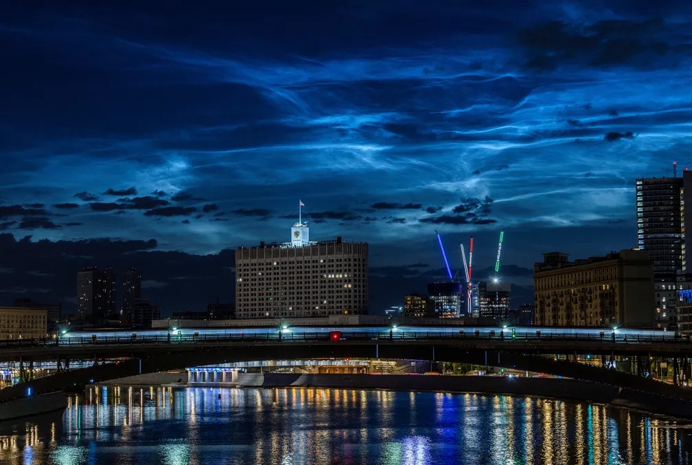 A cidade de Moscou, na Rússia, foi tomada por nuvens brilhantes nas primeiras horas desta terça-feira (4). Extremamente raro, o fenômeno é conhecido como nuvens noctilucentes e geralmente é observado no verão, ao nascer ou pôr do sol.