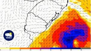 O INMET ressalta que este sistema tem o deslocamento característico do continente em direção ao alto-mar, o que vai gerar um sistema frontal. Há previsão ainda de tempestades no oeste do Paraná e centro-oeste do planalto sul de Santa Catarina.