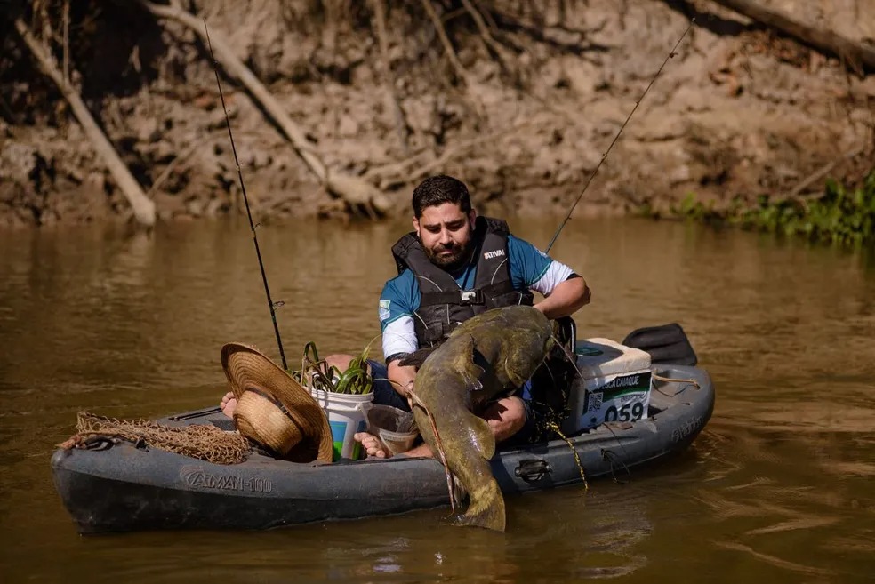 O servidor público Evando de Souza Venturolli, de 30 anos, venceu a categoria caiaque fisgando um peixe da espécie jaú. A captura aconteceu durante o Festival Internacional de Pesca (Fipe) no município de Cáceres.