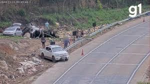 Imagens da câmera de segurança que monitora a via mostram o momento em que um grupo de pessoas se aproxima do veículo tombado e começa a carregar as cebolas, colocando-as no porta-malas de dois carros. As imagens foram encaminhadas à Polícia Rodoviária Federal (PRF).
