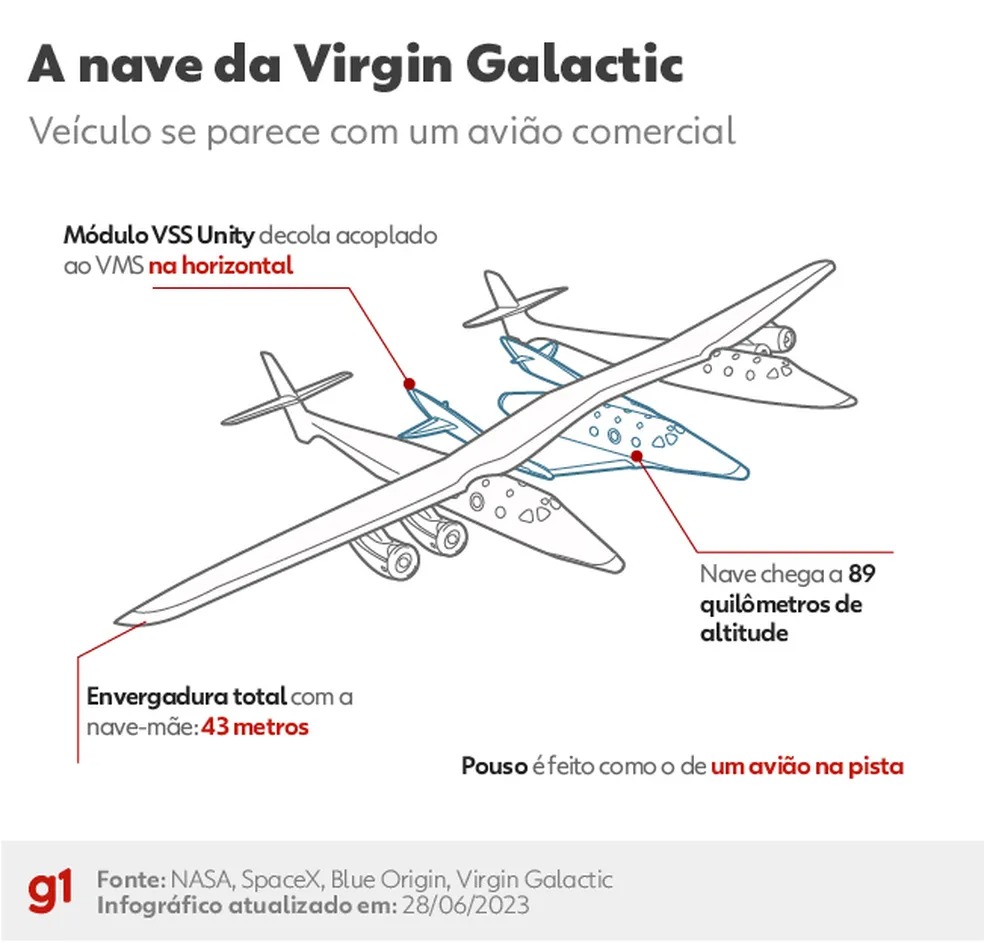 A viagem é o início de uma nova etapa para a Virgin Galactic. A empresa de turismo espacial realizou um voo suborbital em 2021 com o bilionário Richard Branson, dono da marca, e, agora, deve atender clientes que já pagaram para voar ao espaço.