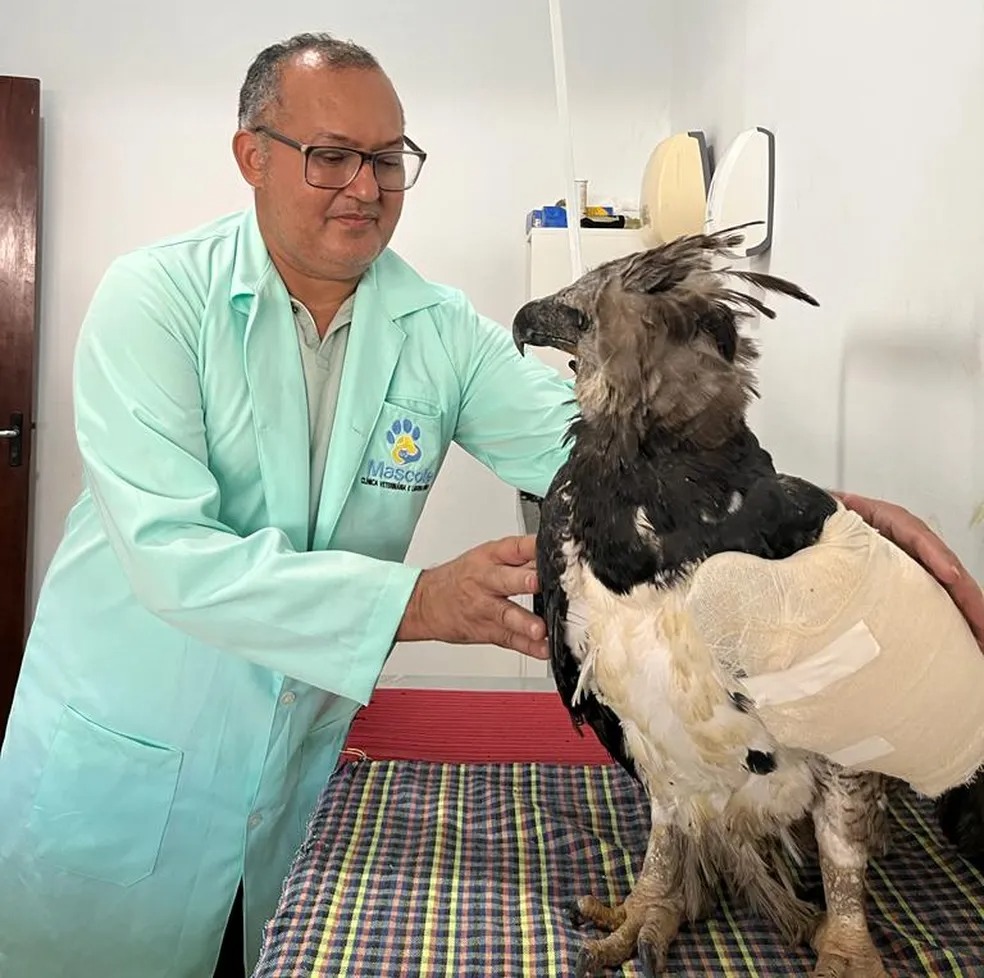 De acordo com o médico veterinário, José Pereira, que fez o primeiro atendimento, a ave já estava com cinco dias de ferimento. “A ferida estava bastante necrosada. Nós iniciamos o tratamento, mas ela precisará ser transferida para cuidados de ortopedia específico para animais silvestres”, explicou Pereira. O animal terá que passar por uma cirurgia na asa.