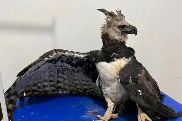 Ao ser resgatado pela PM e pelo servidores da Secretaria Municipal de Meio Ambiente de Santa Cruz do Xingu e ser entregue à Sema, foi observado que a águia, estava debilitada e com uma asa quebrada.